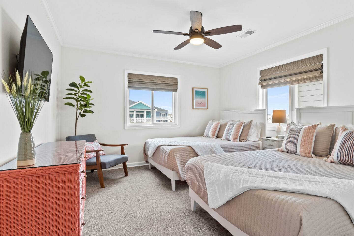 We are on the top floor (32 steps), so no one is above you and better yet, nothing blocks your view! The kitchen is fully stocked (even a margarita machine!) and is equipped with new stainless steel appliances. Each room has been thoughtfully decorated and has a smart TV (bring your passwords). We want you to come ready to relax! Here's what we provide: -All bed, bath and kitchen linens are included!! Woohoo!! -6 beach chairs & a beach wagon -Included essentials: Keurig cups, cream/sugar, dish soap & sponge, toilet paper, dishwasher tablets, laundry pods, trash bags, hand soap. You won't need to visit the grocery store:) Enjoy everything Ocean Isle beach has to offer: ️★GOLF-Over 100 courses within a 30 mile radius ★FALL-Skip the crowds & relax while enjoying all the perks the off season has to offer! ★WINTER- Snowbirds welcome! ★SPRING- Enjoy the warming temperatures and the quiet beaches ★SUMMER-Friday night summer concerts, weekly movies in the park, Saturday summer markets, mini golf, a variety of great restaurants, an ice cream shop, the best Italian ice, the Museum of Coastal Carolina, and of course fishing. There is so much fun packed into this family friendly island! We strongly suggest Travelers Insurance, especially during the Hurricane Season June 1-Nov 1. We will not issue refunds unless local government authorities order mandatory evacuation. We have a Ring doorbell for the safety of our guest that will be on during your stay. We can't wait for you to visit!!